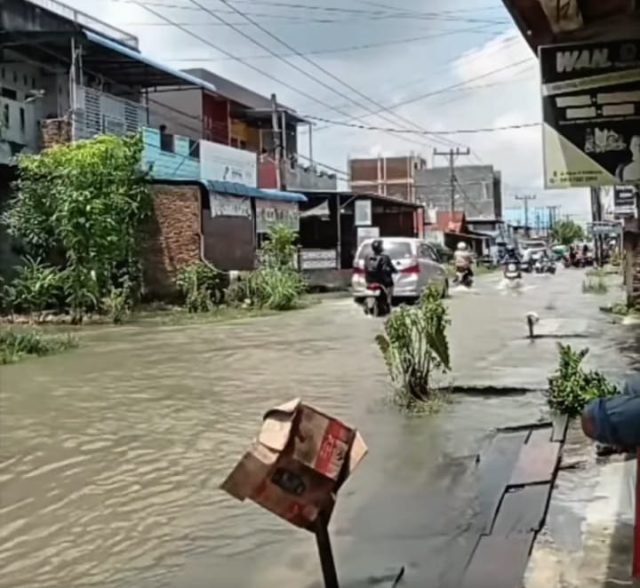 ” Banjir akibat hujan deras tadi malam dan hingga siang ini masih belum surut karena drainase disini tidak bagus. Habis air masuk ke rumah warga. Parit sudah tak nampak lagi rata macem laut,” ucap Robi warga setempat. Kamis,16/10/2025.