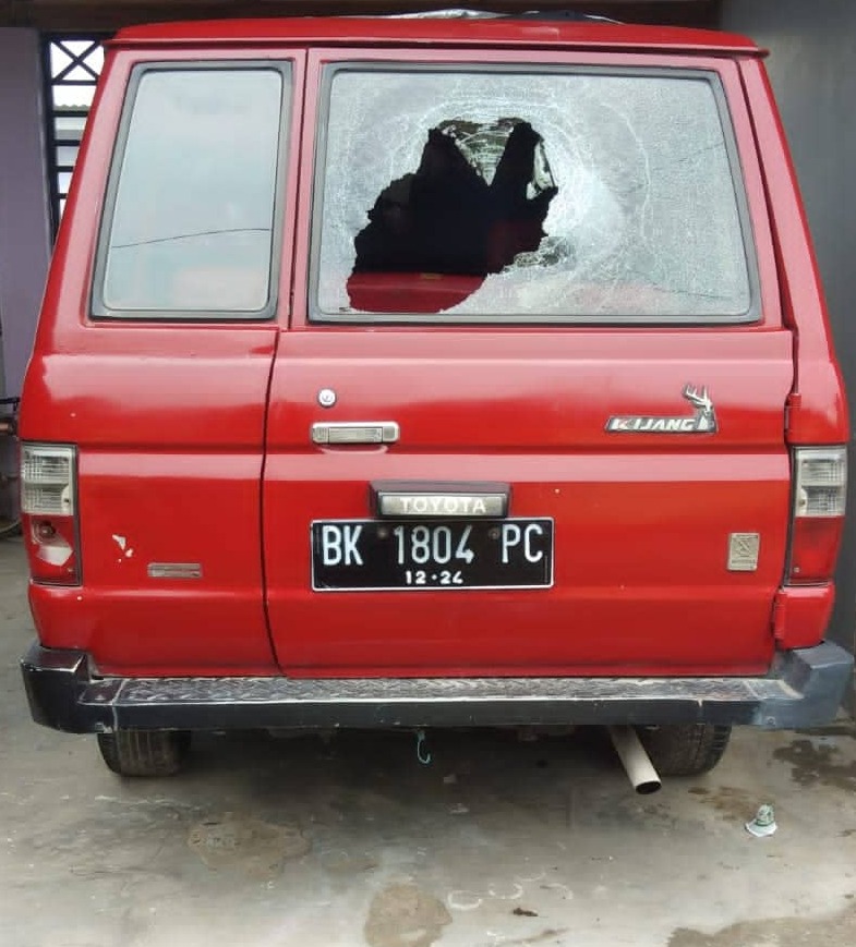 LANGKAT (podiumindonesia.com)- Aksi teror terus menimpa jurnalis. Dan kini menimpa seorang wartawan di Langkat. Adalah Prawito, seorang pemimpin redaksi online di Langkat tersebut mengalami teror dengan melakukan pemecahan kaca mobilnya. Kasus ini pun kabarnya tengah ditangani Poldres Langkat.