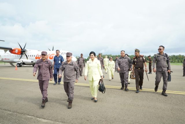 NIAS – Kajati Sumatera Utara Dr.Harli Siregar, SH.,M.Hum didampingi Ketua Ikatan Adhyaksa Dharmakarini (IAD) Wilayah Sumatera Utara Ny.Tiurmaida Harli Siregar mengunjungi wilayah hukum Kejaksaan Negeri Gunung Sitoli guna melihat secara langsung kinerja jajaran pada satuan kerja di wilayah tersebut.