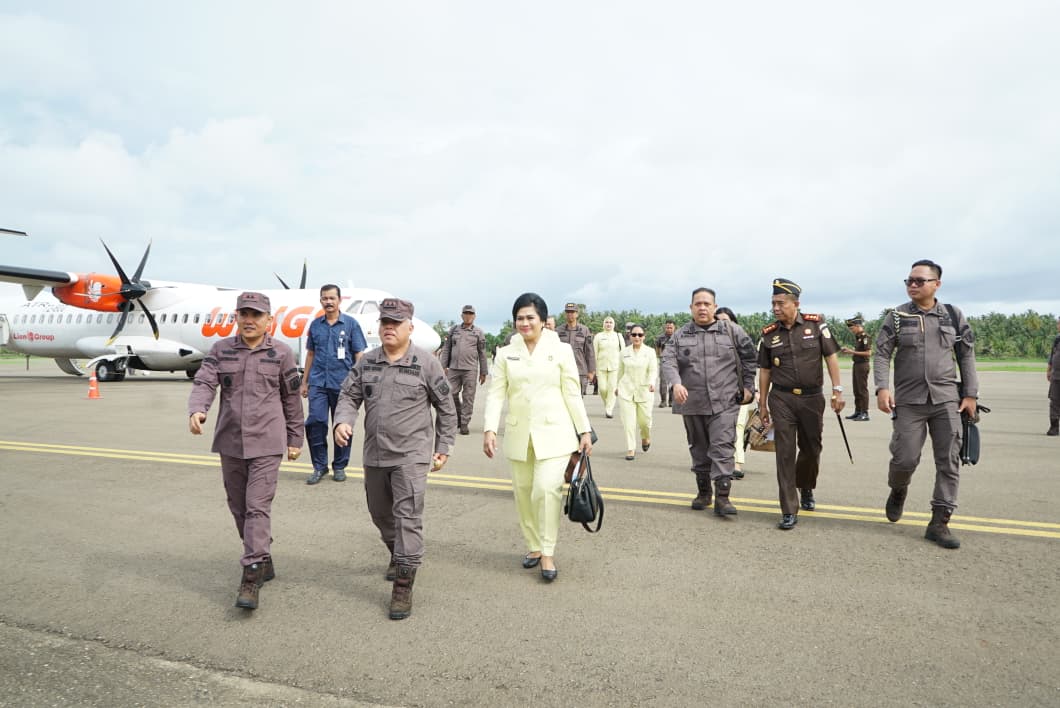 Saat tiba di bandara binaka Gungung Sitoli, Kajati Sumut beserta Asisten Intelijen, Asisten Pengawasan, Asisten Pembinaan, Asisten Pidana Khusus, Asisten Pidana Militer, Asisten Perdata Dan Tata Usaha Negara, Kabag Tata Usaha hingga Kasi Penerangan Hukum di sambut Kajari Gungun Sitoli Parada Situmorang, SH.,MH beserta Kajari Nias Selatan Edmon Purba, SH.,MH dan seluruh jajaran.