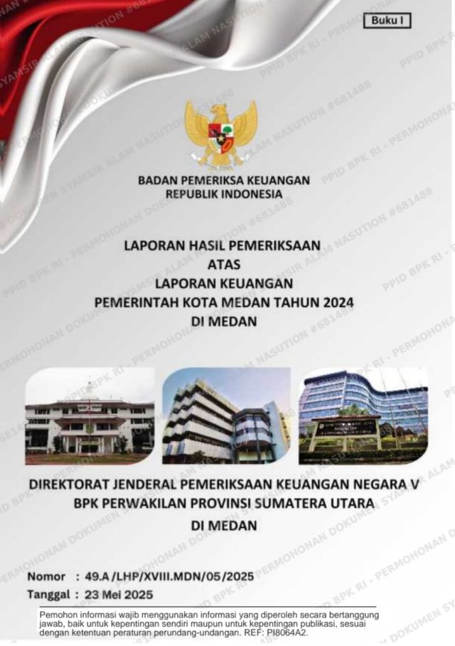 Temuan itu berdasarkan audit BPK dengan nomor : 74/LHP/XVIII.MDN/12/2024, berdasarkan kontrak nomor