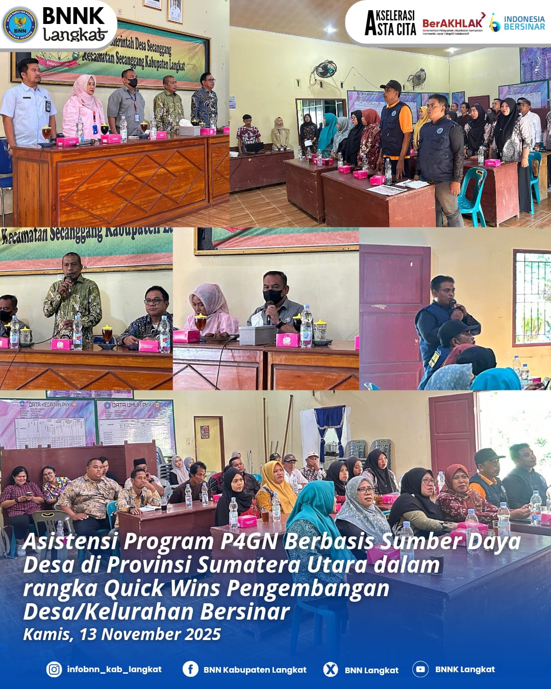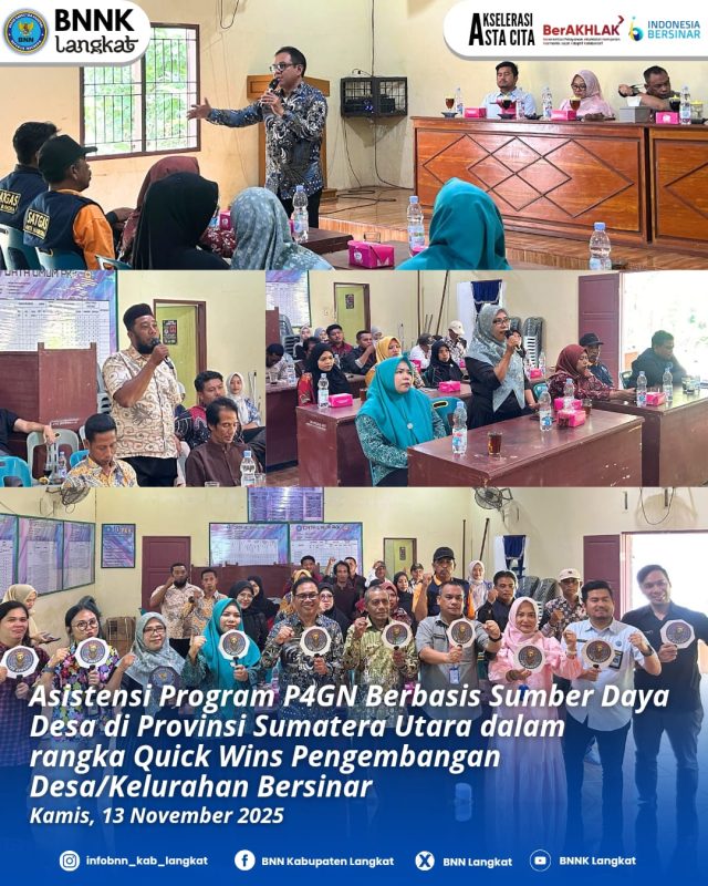 Badan Narkotika Nasional (BNNK) Kabupaten Langkat Bersama Pemdes Secanggang Gelar rapat koordinasi dan sosialisasi tentang bahaya Narkoba bertempat di Aula Kantor desa Secanggang,kecamatan Secanggang kabupaten Langkat, Kamis (13/11/2025).