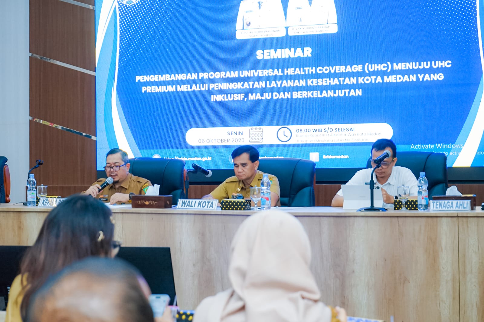 MEDAN – Pemko Medan melalui Badan Riset dan Inovasi Daerah (Brida) Kota Medan menggelar kegiatan Seminar Hasil Pengembangan Program Universal Health Coverage (UHC) menuju UHC Premium Melalui Peningkatakan Pelayanan Kesehatan di Kota Medan yang Inklusif, Maju dan Berkelanjutan.