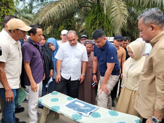 LANGKAT – Gubernur Sumatera Utara Muhammad Bobby Afif Nasution meninjau jalan amblas di Kecamatan Batang Serangan, Kabupaten Langkat, Sabtu (27/9/2025). Jalan amblas tersebut diduga akibat abrasi dan dilintasi kendaraan melebihi tonase.
