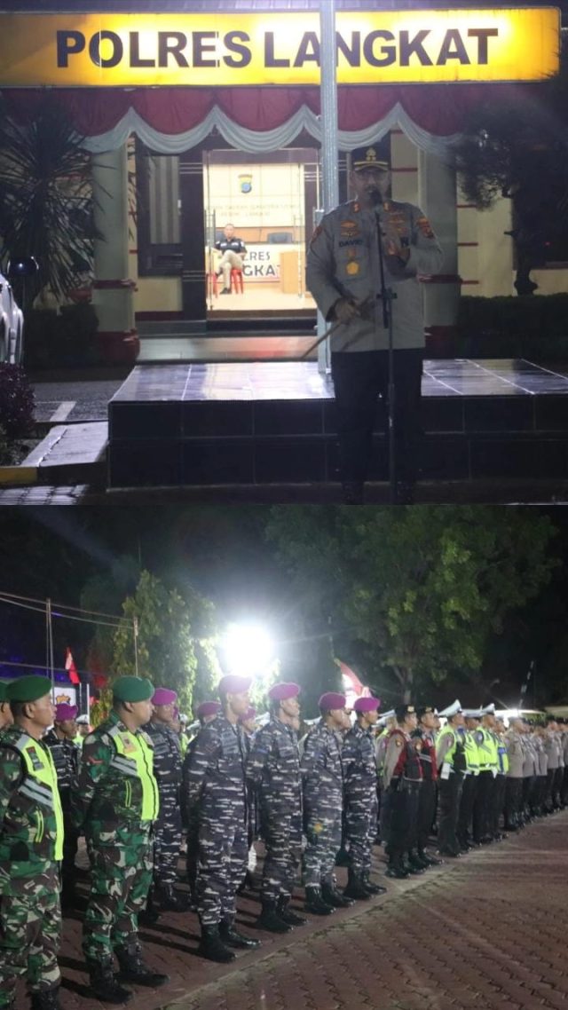 Arahan Kapolres Langkat AKBP David Triyo Menyampaikan, Alhamdulillah sampai malam ini, situasi kamtibmas di Wilkum Polres Langkat masih aman dan terkendali, Kami mengucapkan terima kasih kepada rekan² semuanya yang sudah berbuat untuk Kabupaten. Langkat yang aman dan damai, Semangat ini harus kita pelihara dengan bekerja sama dan sama bekerja karena kita adalah satu bagian utuh dari refrentasi suatu negara, Malam ini kegiatan kita adalah patroli skala besar secara bersama, kita tunjukan kepada Masyarakat bahwa situasi kamtibmas di Kab. Langkat tetap terjadi dengan kehadiran kita, Kita pastikan kegiatan masyarakat tetap berjalan dengan normal tanpa ada rasa kekhawatiran, Mari kita bersama melakukan pemantauan terhadap situasi kamtibmas di Kabupaten. Langkat. Kita harus selalu siap siaga dalam memberikan pelayanan kepada Masyarakat.