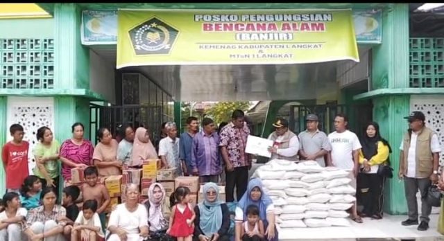 Pada Sabtu, (6/12), Kepala Kantor Kementerian Agama Kabupaten Langkat, H. Ainul Aswad, MA., mengunjungi posko pengungsian yang berada di MTsN 1 Langkat. Dalam kunjungannya, ia menyerahkan bantuan berupa sembako untuk memenuhi kebutuhan para pengungsi. Bantuan tersebut diharapkan dapat meringankan beban masyarakat yang masih menunggu kondisi banjir surut.