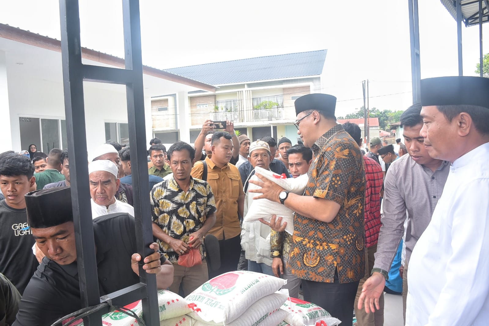 Usai Salat Jumat, panitia bersama Pemkab Deli Serdang membagikan sebanyak 200 paket sembako kepada warga atau jemaah yang berhak menerimanya.