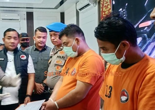 Kapolres Asahan AKBP. Revi Nurvelani yang didampingi Kasat Narkoba Polres Asahan AKP.Mulyoto saat gelar conferency pers di Mapolres Asahan mengatakan Sat.Res Narkoba Polres Asahan kembali dapat menggagalkan peredaran narkotika jenis sabhu dari Malaysia yang masuk wilayah desa Bangun Sari, Kecamatan Air Joman, Kabupaten Asahan, yang dibawa oleh dua pelaku masing masing berinisial ” G dan W” yang keduanya merupakan warga Kecamatan Air Joman , dan kedua tersangka tersebut tidak tanggung tanggung membawa narkotika jenis sabhu sebanyak 76 bungkus narkotika jenis sabhu yang dikemas dalam bungkusan teh China dan setiap bungkus narkotika tersebut seberat 1 kilo gram, ujarnya.